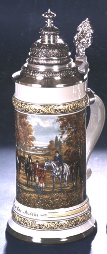 Porzellankrug mit Façonspitzdeckel und Bodenbild
